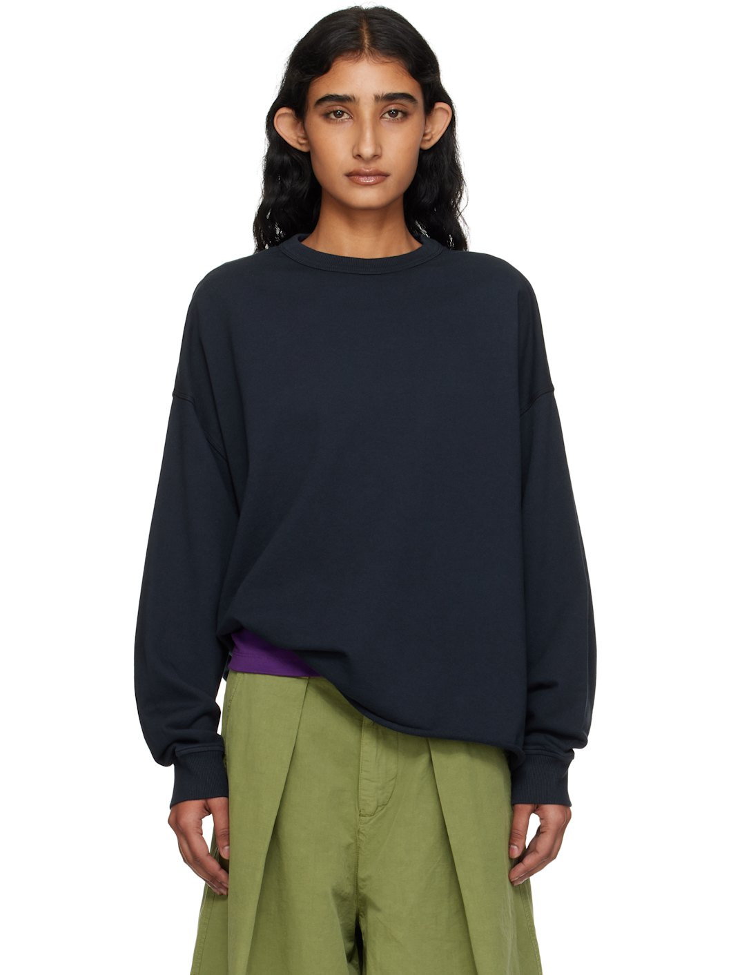 Organic cotton French terry sweatshirt. · Oversized · Rib-knit crewneck and cuffs · Rolled edge at hem · Dropped shoulders Supplier color: Navy Body: 100% organic cotton. Trim: 97% organic cotton, 3% elastane. Made in Portugal 252161F098010