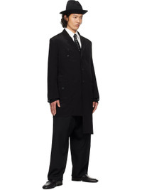 Lightweight and semi-sheer silk crepe de chine blazer. · Notched lapel · Button closure · Welt pockets with button tabs at front · Asymmetrical hem · Vented at side seams · Padded shoulders · Twin button vents at back hem · Unlined Part of the Yohji Yamamoto POUR HOMME collection. Supplier color: Black 100% silk. Made in Japan 251573M176000