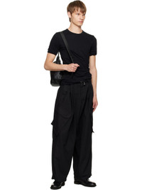 Grained leather shoulder bag. · Convertible and adjustable crossbody strap · Converts from left or right shoulder · Pleat and embossed logo at face · Zip closure at back face · Zip pocket at interior · Twill lining · H13" x W9" x D4.5" Part of the discord YOHJI YAMAMOTO collection. Supplier color: Black Leather. Made in Japan 252573M170003
