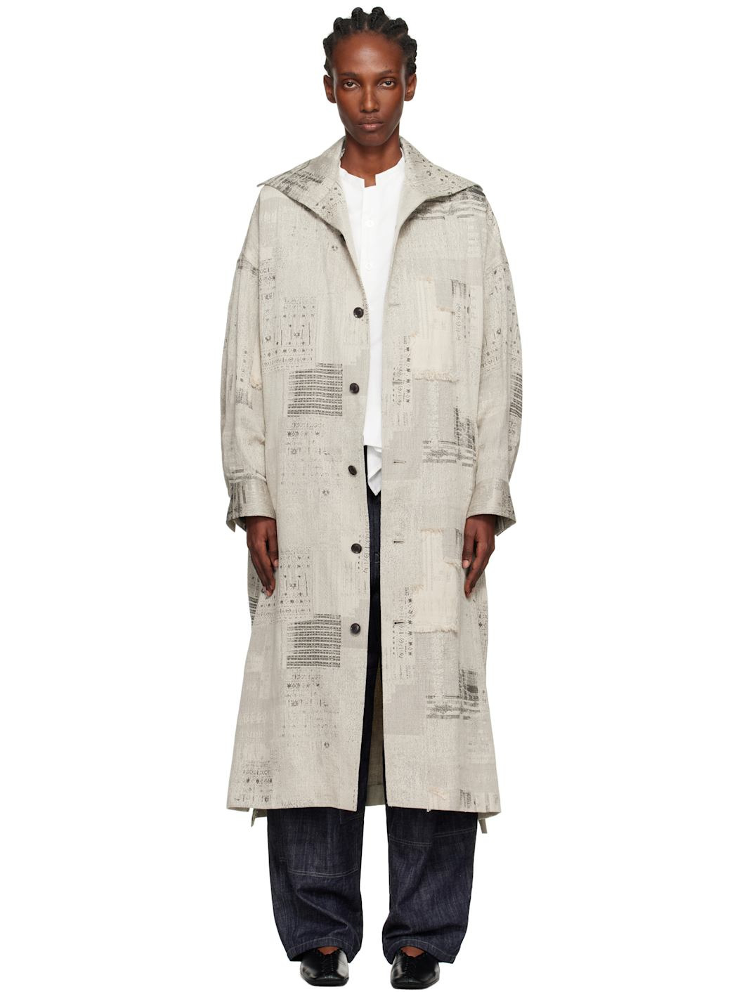 Plain-woven cotton coat. · Woven pattern with fringed detailing throughout · Spread collar · Button closure · Welt pockets at front · Vented side seams · Dropped shoulders · Pleats at buttoned barrel cuffs · Box pleat at back yoke · Unlined Supplier color: Ivory 100% cotton. Made in Japan 252731F055001