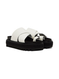 Pebble-grained leather sandals in white. · Thong-style strap at open toe · Criss-crossing straps at vamp · Logo embossed at molded leather footbed · Topstitching at welt · Braided jute trim at platform midsole · Treaded foam rubber sole · Platform: H1.5" Supplier color: White Upper: leather. Sole: rubber. Made in Japan 241731F124002