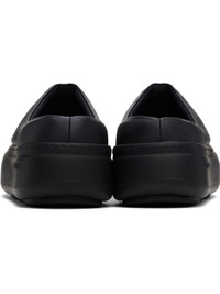 Padded buffed faux-leather slip-on loafers in black. · Rubber cap toe · Logo stamp at molded footbed · Grained faux-leather lining · Logo-embossed rubber platform midsole · Treaded rubber sole · Platform: H2" Supplier color: Black Upper: synthetic. Sole: rubber. Made in Portugal 251844M231010