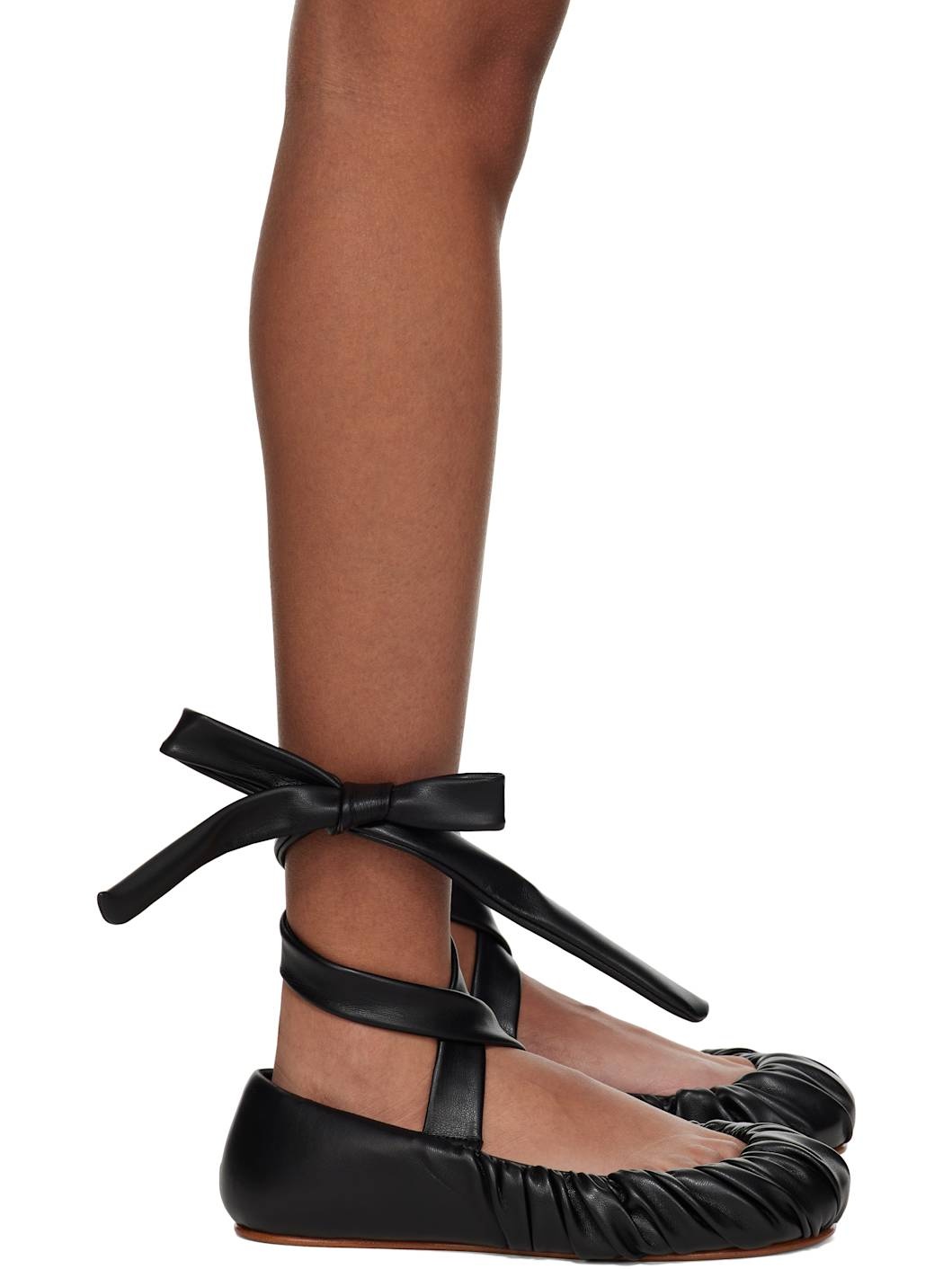 Padded grained faux-leather ballerina flats in black. · Gathering throughout · Wraparound self-tie ankle strap · Logo printed at padded footbed · Microfiber lining · Leather sole Supplier color: Black leather Upper: synthetic. Sole: leather. Made in Portugal 251844F118001