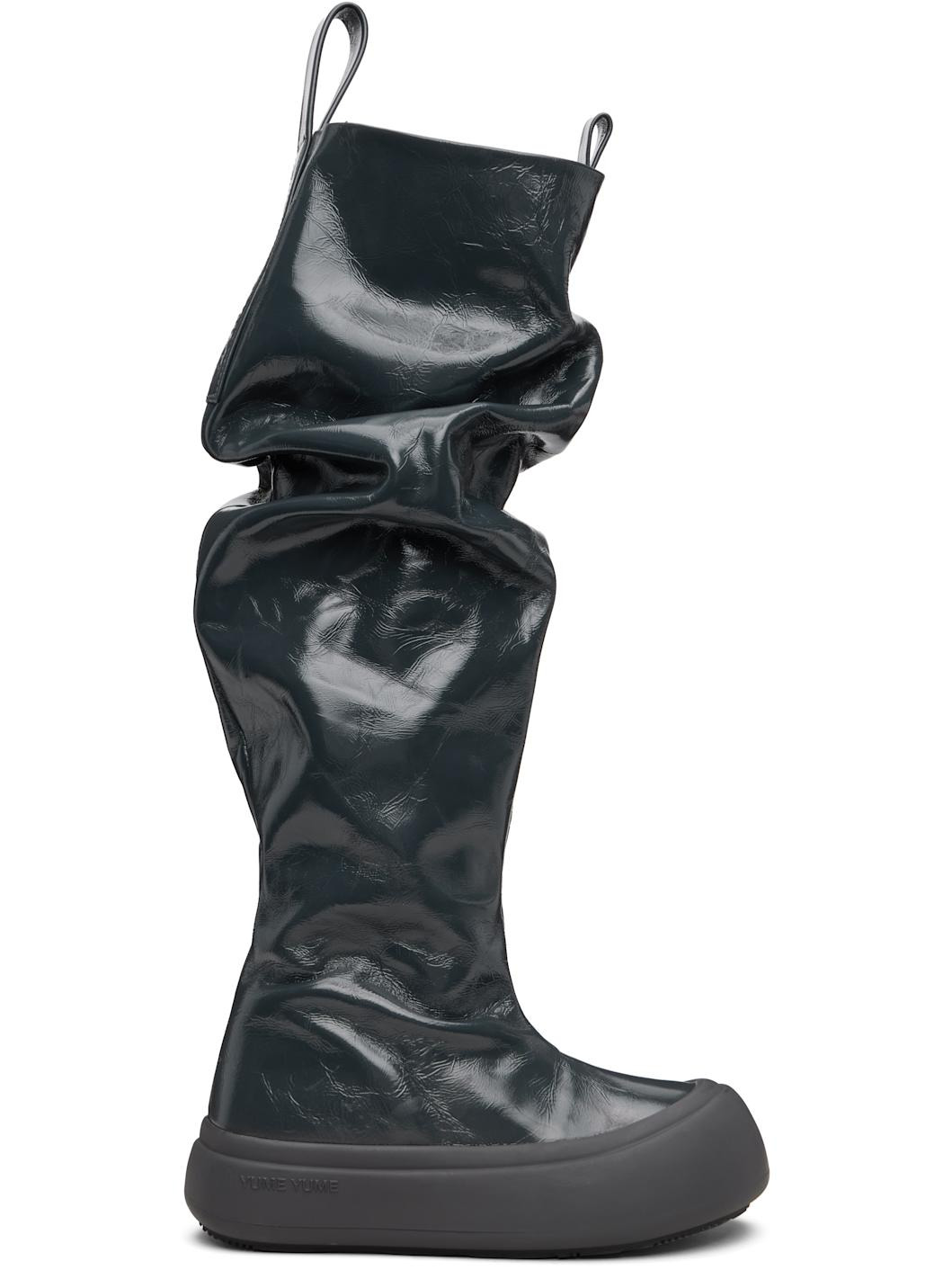Knee-high crinkled leather boots. · Gathering throughout · Logo-embossed pull-loops at collar · Grained faux-leather lining · Logo-embossed rubber platform midsole · Treaded rubber sole · Platform: H1.75" Supplier color: Wrinkled grey Body: leather. Sole: rubber. Made in Portugal 252844M228005