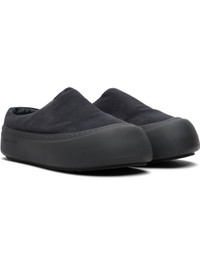 Padded suede loafers. · Logo embossed at outer side · Buffed leather lining · Treaded rubber sole Supplier color: Dark grey suede Upper: leather. Sole: rubber. Made in Portugal 252844M231007