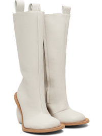 Knee-high buffed faux-leather boots. · Logo-embossed pull-loops at collar · Zip closure at inner side · Grained faux-leather lining · Sculptural heel · Rubber sole · Heel: H4.25" Available exclusively at SSENSE. Supplier color: Rainday Upper: synthetic. Sole: rubber. Made in Portugal 252844F115011