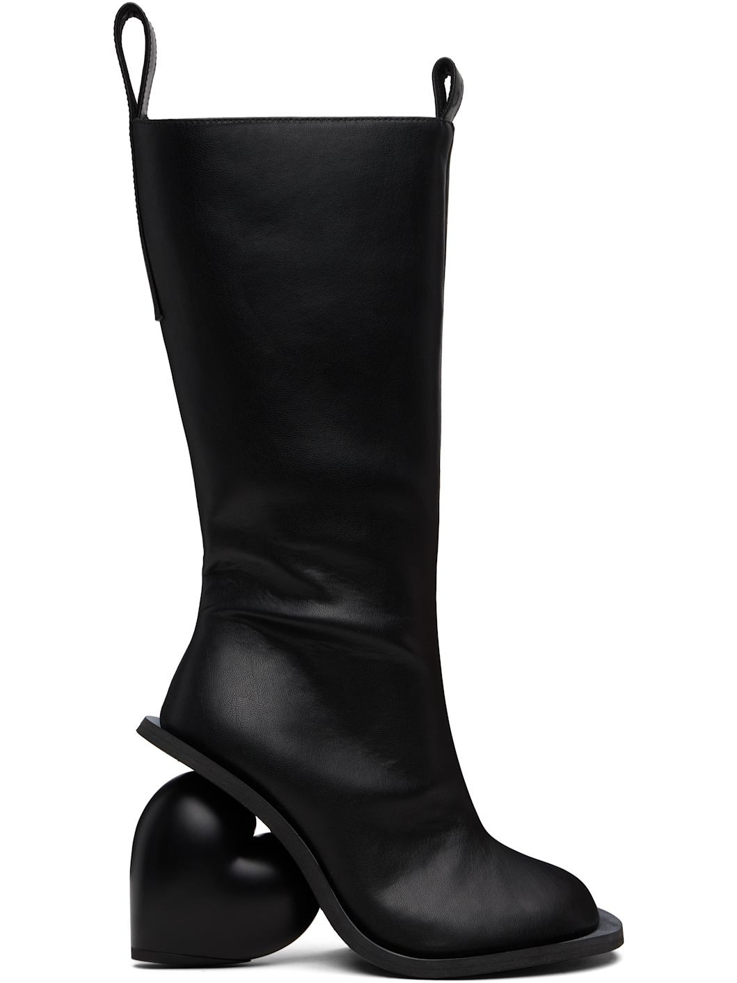 Knee-high buffed faux-leather boots. · Logo-embossed pull-loops at collar · Zip closure at inner side · Grained faux-leather lining · Sculptural heel · Rubber sole · Heel: H4.25" Available exclusively at SSENSE. Supplier color: Black Upper: synthetic. Sole: rubber. Made in Portugal 252844F115012