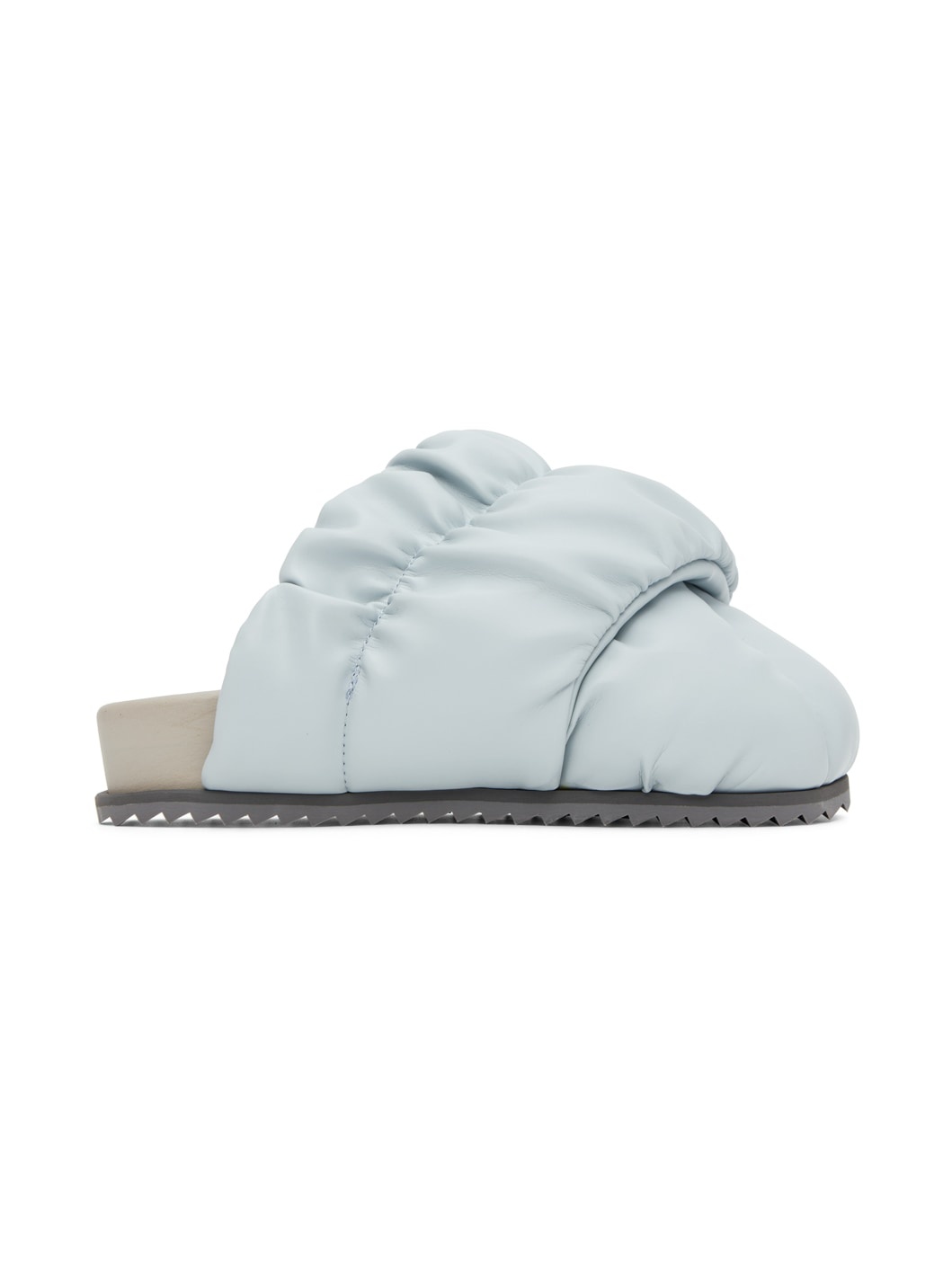 Quilted grained faux-leather slip-on loafers in blue. Gathering throughout. · Square toe · Faux-leather lining · Logo printed at platform midsole · Treaded rubber outsole · Platform: H1.5 in Available exclusively at SSENSE. Supplier color: Weather Upper: synthetic. Sole: rubber. Made in Portugal 222844F121011