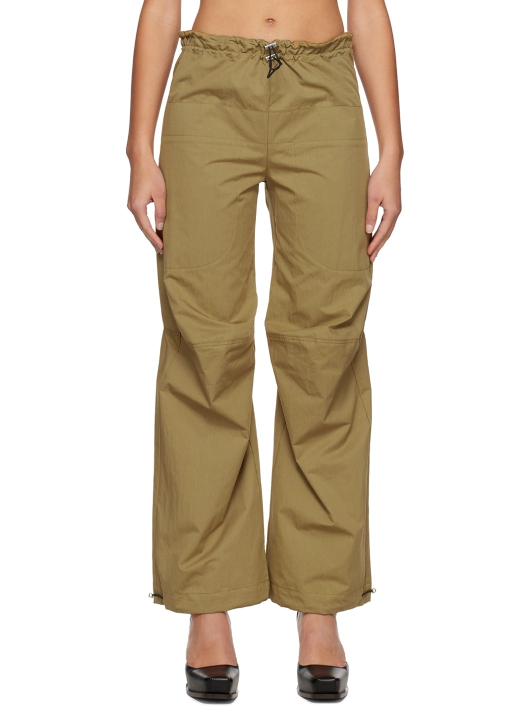 Cotton-blend twill lounge pants. · Bungee-style drawstring at elasticized waistband and cuffs · Four-pocket styling · Bungee-style drawstring at cuffs · Cutout at back legs Supplier color: Khaki 55% cotton, 45% nylon. Made in Portugal 231899F087008