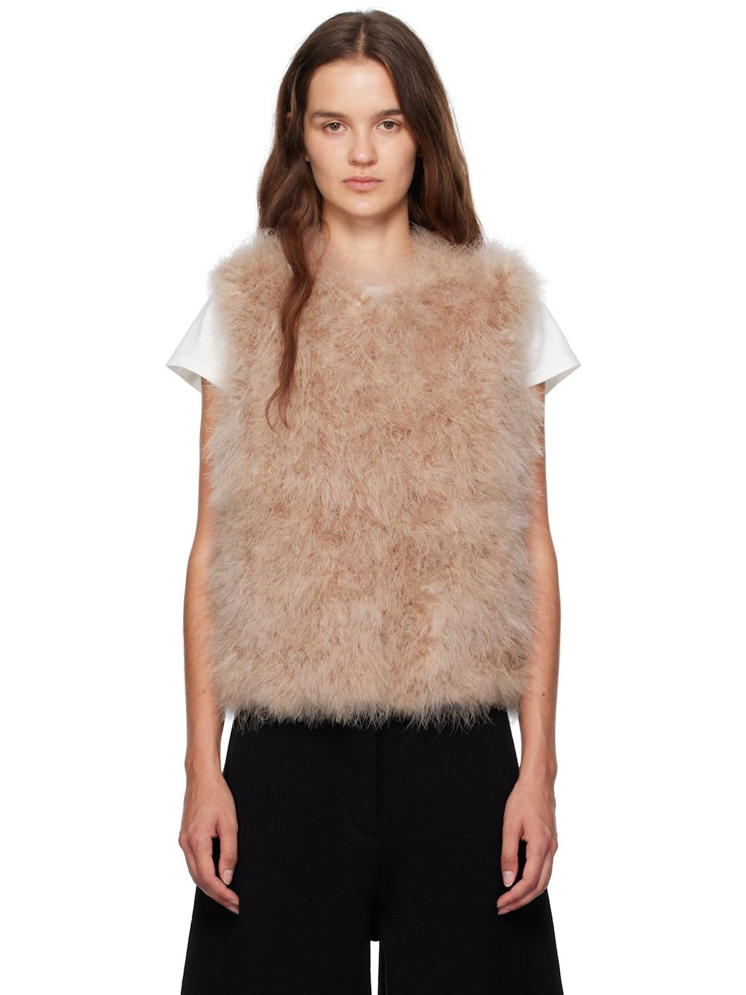 Turkey feather vest. · Round neck · Hook-eye closure · Welt pockets at waist · Silk satin lining Supplier color: Palombaggia Body: 100% turkey feathers. Lining: 100% silk. Made in France 252594F062034