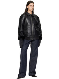 Pair of down-filled satin mittens. Fox fur trim at elasticized cuffs. Supplier color: Noir Fill: 90% duck down, 10% duck feather. Trim: 100% fox fur. Body: 100% polyester. Made in France 252594F012003