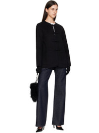 Turkey feather pouch. · Drawstring closure at throat · Card slot at interior · Woven lining · H9" x W9" Supplier color: Noir Body: 100% turkey feather. Lining: 100% polyester. Made in France 252594F048000
