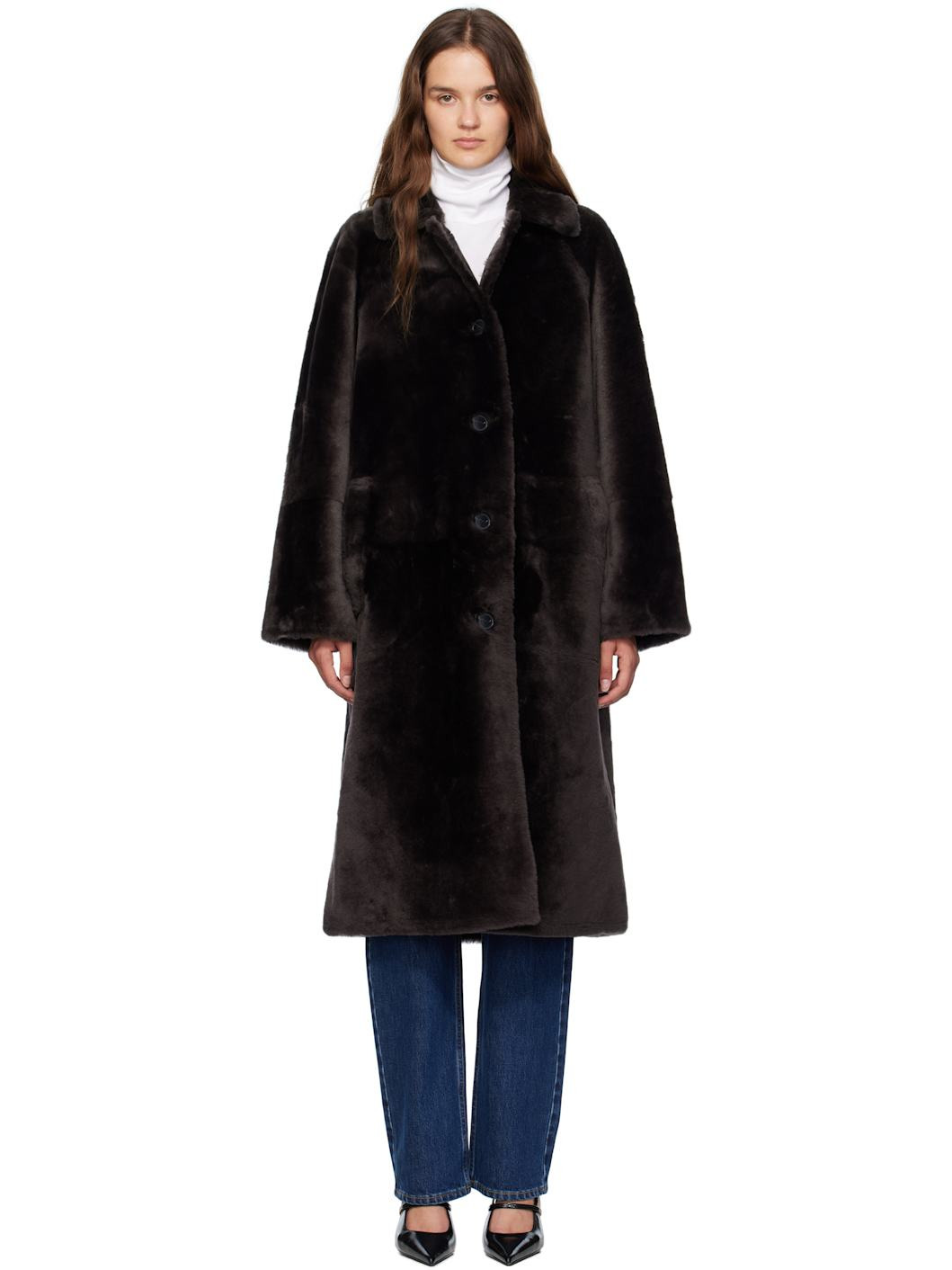 Lambswool fleece coat. · Notched lapel · Button closure · Welt pockets at waist · Grained lambskin interior Supplier color: Etain 100% lambskin. Made in France 252594F062007