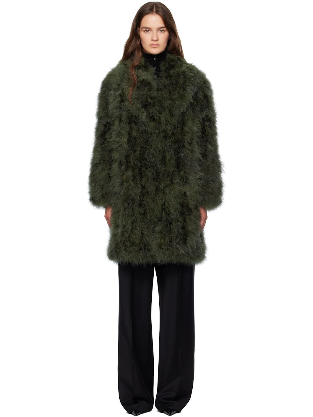 Green Long Feather Coat