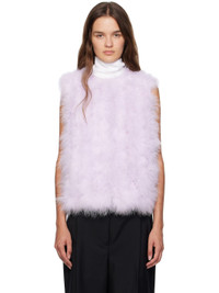 Turkey feather vest. · Round neck · Hook-eye closure · Welt pockets at waist · Silk satin lining Supplier color: Glycine Body: 100% turkey feathers. Lining: 100% silk. Made in France 252594F062033