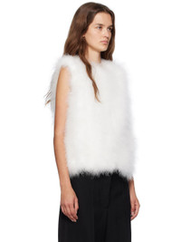 Turkey feather vest. · Round neck · Hook-eye closure · Welt pockets at waist · Silk satin lining Supplier color: Meringue Body: 100% turkey feathers. Lining: 100% silk. Made in France 252594F062040