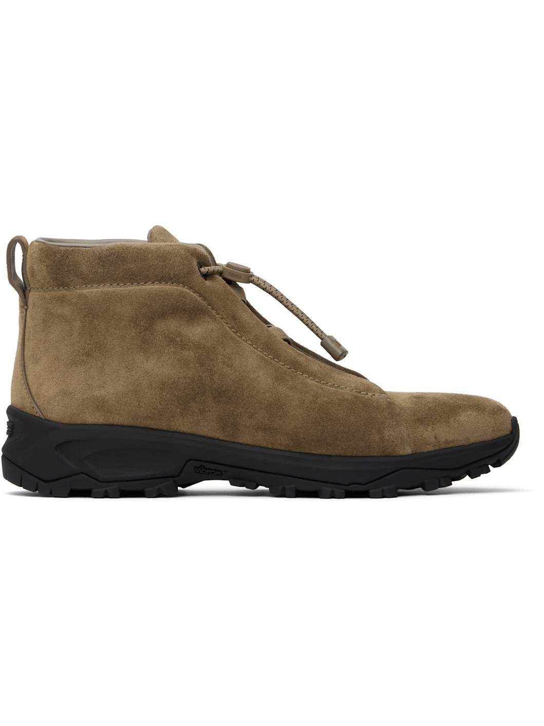 High-top suede sneakers in beige. · Elasticized criss-crossing straps at vamp · Bungee-style drawstring closure · Logo bonded at padded tongue · Padded collar · Pull-loop at heel tab · Logo embossed at heel · Buffed leather lining · Treaded Vibram® Arctic Grip rubber sole Supplier color: Beige Upper: leather. Sole: rubber. Made in Italy 242142M236000