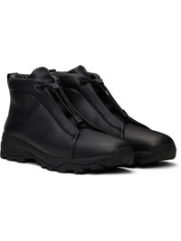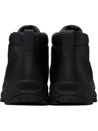High-top grained calfskin sneakers in black. · Elasticized criss-crossing straps at vamp · Bungee-style drawstring closure · Logo bonded at padded tongue · Padded collar · Pull-loop at heel tab · Logo embossed at heel · Buffed leather lining · Treaded Vibram® Arctic Grip rubber sole Supplier color: Black Upper: calfskin. Sole: rubber. Made in Italy 242142M236001