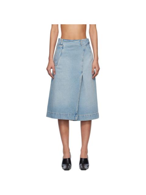 Blue Wrap Detail Denim Midi Skirt