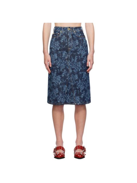 Blue Lazer Denim Midi Skirt
