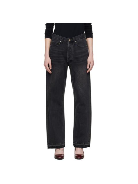 Black Frayed Hem Loose Straight Denim Jeans