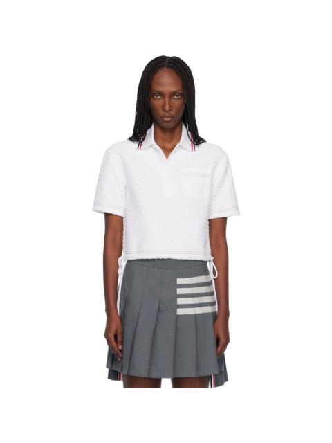 White Eyelash Ribbon Tweed Drawstring Hem Polo