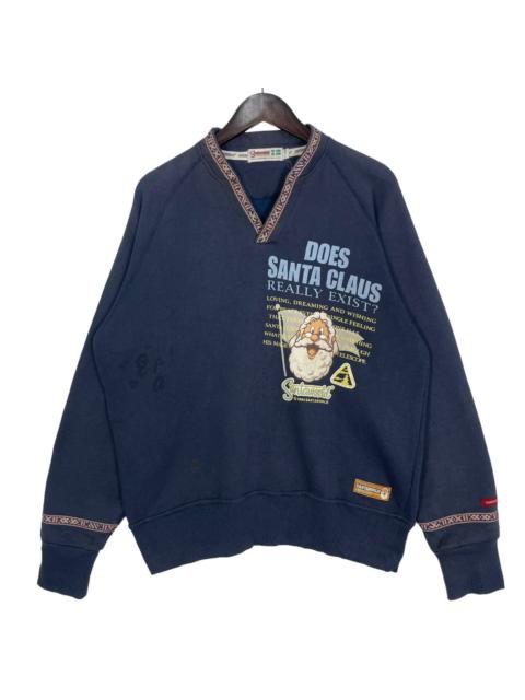 Japanese Brand - Vintage Santa Claus Really Exist Sweatshirt Navy Faded