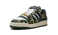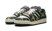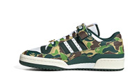 The BAPE x adidas Forum ‘84 Low “30th Anniversary - Green Camo” is a collaboration by the Japanese streetwear brand on the retro basketball shoe that honors BAPE’s 30th anniversary. Founded by legendary streetwear designer Nigo in 1993, BAPE is widely considered among the most influential clothing brands in the world. Its collaboration with adidas on the Forum ‘84 Low celebrates its three-decade existence. The shoe features BAPE iconic green camouflage print in an all-over pattern on the overlays while white leather is found on the base. Black Three Stripes branding appears on the side. A gold “APE” logo is displayed on the lateral side of the heel while an oversized gold “BAPE” dubrae is located at the bottom of the laces. BAPE’s 30th anniversary branding can be seen on the tongue. Release date: May 20, 2023