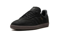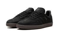 The adidas Samba “Core Black/Gum” is a black-based colorway of the popular sneaker by the German footwear company. Versatile in every sense of the word, the Samba in “Core Black/Gum” features a black nubuck construction with a tonal overlay on the toe. Molded Three Stripes branding is seen next to gold “Samba” detailing on the side. A black leather heel tab and black nubuck tongue with tonal “adidas Samba” branding add to the look. Underfoot, a dark gum rubber sole completes the stealthy appearance of this premium Samba. Release date: September 15, 2023