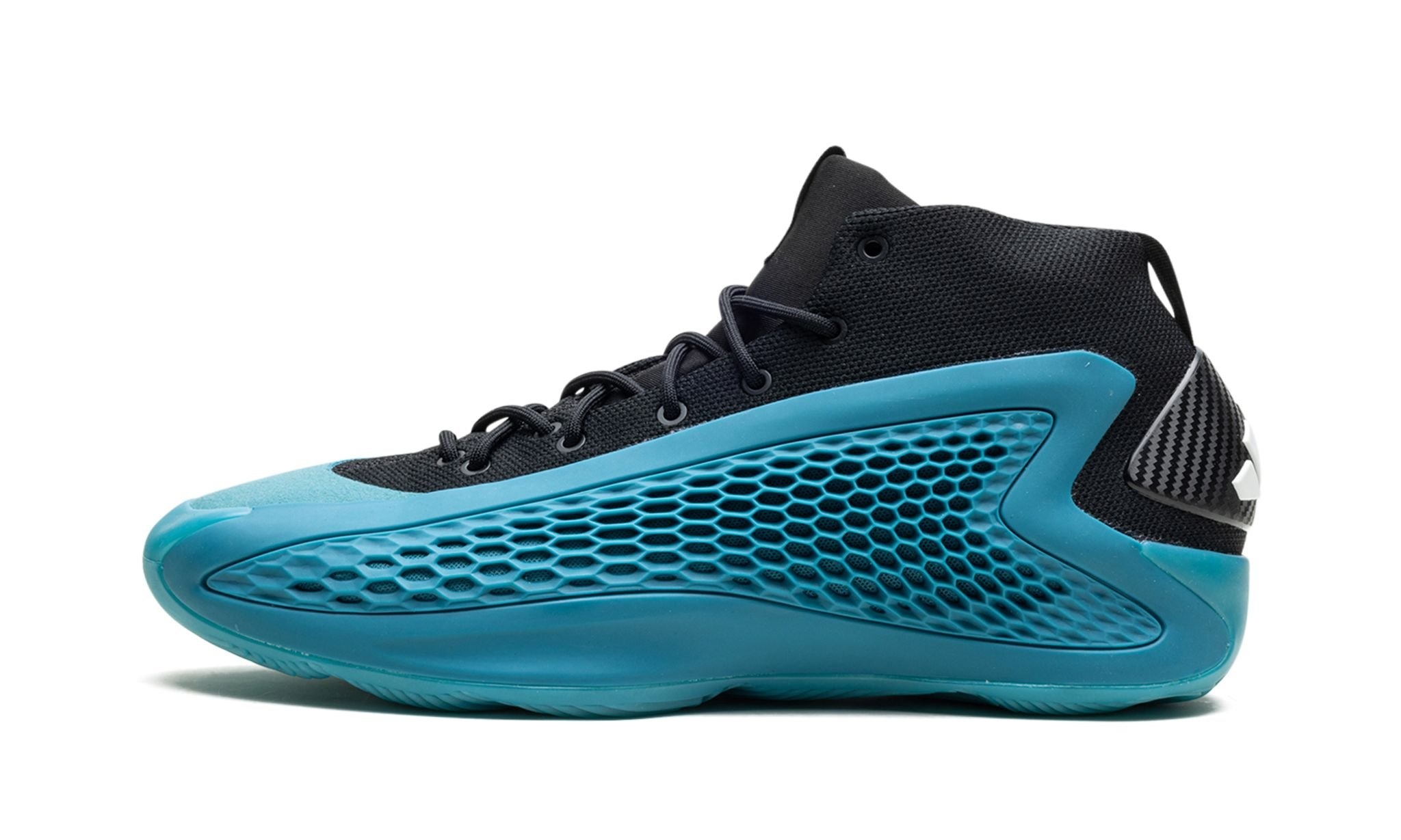 The adidas AE1 "New Wave" is a head-turning colorway of basketball star Anthony Edward’s first signature shoe with adidas Basketball. Worn by Edwards during the MInnesota Timberwolves’ media day in October 2023, the adidas AE 1 “New Wave” features an Arctic Fusion-colored TPU “cage” with perforations in a honeycomb pattern that assist in breathability. The black Primegreen base is made of recycled materials. Edwards’ signature branding appears on the woven tongue tag, while adidas Three Stripes branding can be found on the heel. Underfoot, the midsole is designed with a combination of adidas’s Boost and Lightstrike cushioning for superior performance and energy return.