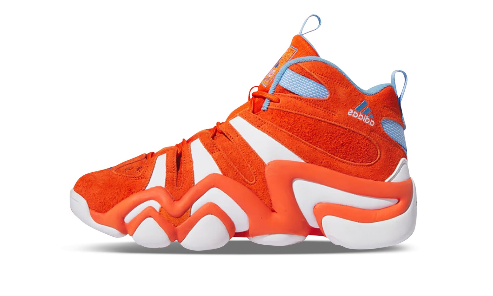 The adidas Crazy 8 "Team Orange" is a colorway of Kobe Bryant’s former signature shoe with adidas with fiery orange accenting. The vibrant colorway has a Team Orange hairy suede base with white accents on the heel and midfoot. Contrasting light blue detailing is seen on the sockliner, the “adidas” branding on the tongue and collar, and on the nylon strap criss-crossing the collar. Underfoot, the Feet You Wear-designed midsole in orange and white features EVA cushioning for a comfortable feel. Release date: September 16, 2023