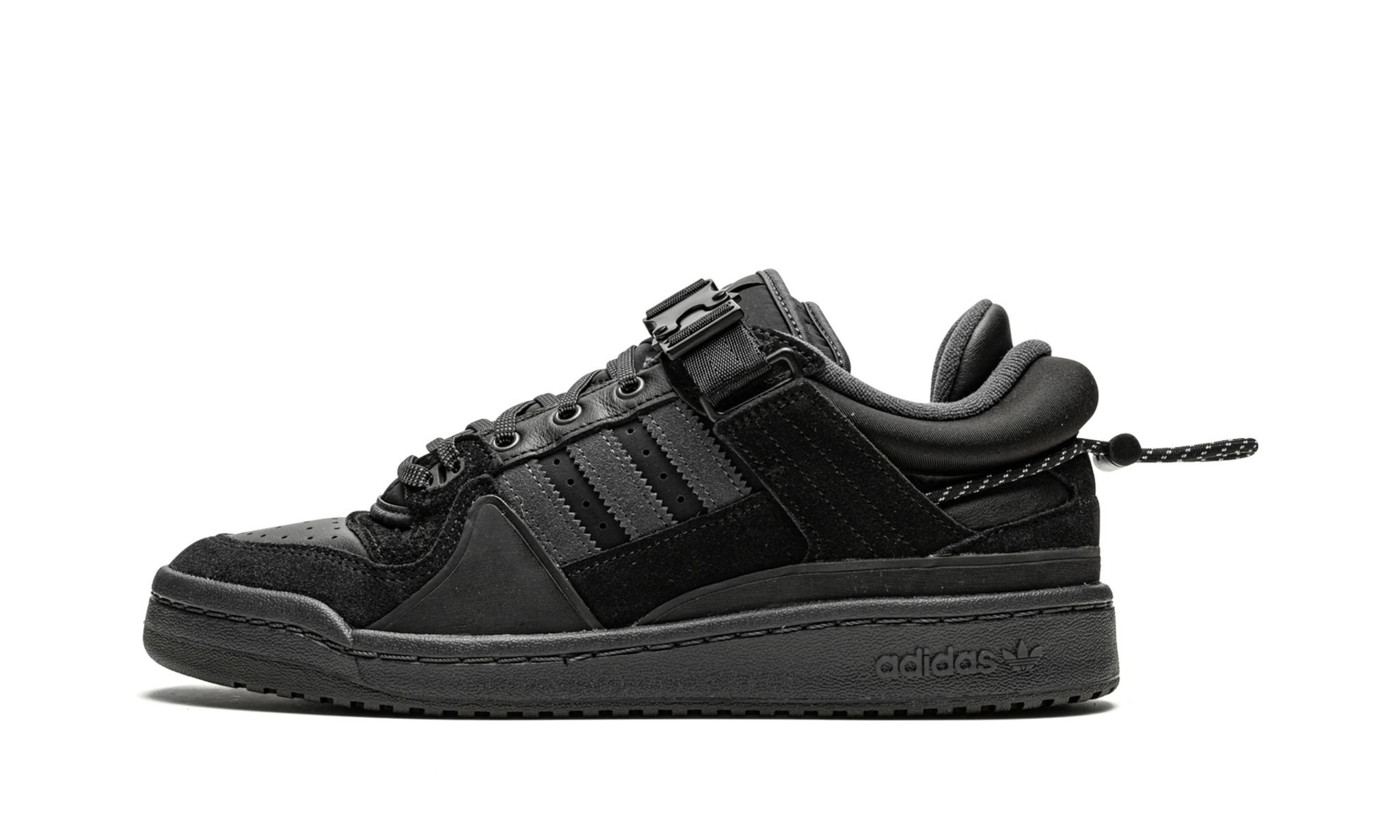 x Bad Bunny Forum Buckle Low sneakers from adidas featuring black, suede, signature three-stripe logo, round toe, perforated detailing, front lace-up fastening, buckle-fastening ankle strap, pull-tab at the heel, branded insole and rubber sole. These styles are supplied by a premium sneaker marketplace. Stocking only the most sought-after footwear, they source and curate some of the most hard to find sneakers from around the world..