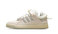 The Bad Bunny x adidas Forum Low “White” is the fourth colorway of the sneaker created by the acclaimed recording artist and adidas. In 2021, Bad Bunny and adidas released the original Forum Buckle Low in a “First Café” color that kicked off one of the most popular sneaker collaborations in the game. The pair has continued to release covetable sneakers since the original project, including this “White” colorway of the chunky, low-top silhouette. The shoe features a white leather perforated toe and perforated mid-panel. The Forum’s signature Three Stripes branding is finished off in grey suede that matches the shade of suede used on the lateral side of the heel. Two overlapping and interchangeable tongues allows for a customizable look. A nylon ankle strap with “YO VISTO ASI,” which translates to “I dress like this” from Spanish, is embroidered under the strap. A lace toggle and stacked heel design on the back of the shoe provide a premium aesthetic. Release date: December 10, 2022