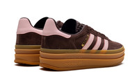Silhouettes are soaring with the Adidas Gazelle Bold WMNS "Icey Pink Auburn", a platform rework of the iconic '90s trainer. This women's exclusive model features a plush suede upper in "Icey Pink," perfectly contrasted by the bold "Auburn" leather Three Stripes and heel tab. The signature stacked, three-tier gum rubber outsole gives you a trendy lift, instantly elevating any casual outfit. Step up your style with this confident and eye-catching take on a true classic.