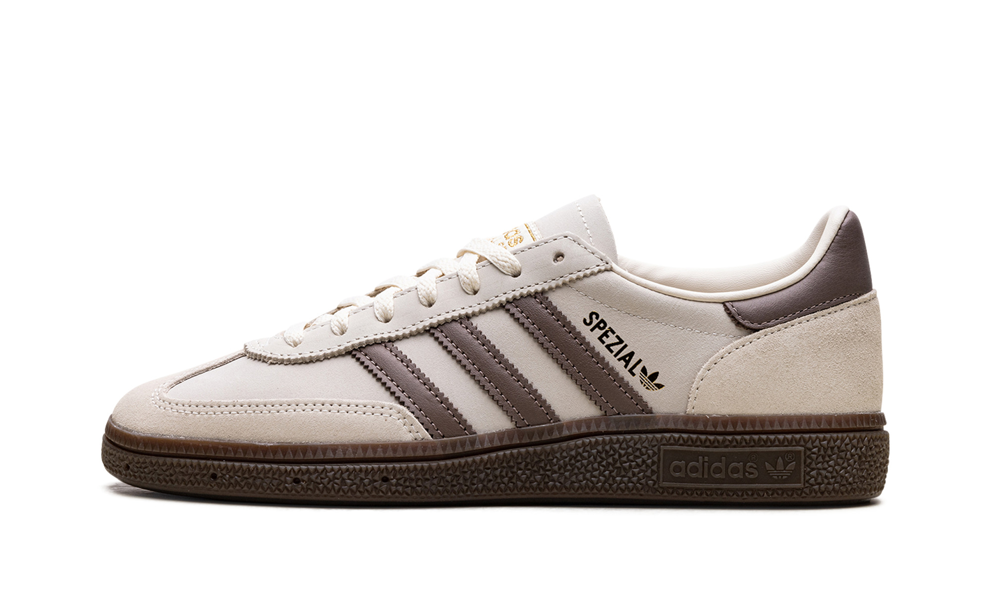 Prepare to step into a piece of sportswear history with the ADIDAS Handball Spezial Wmns "Brown Cream White". This iconic low-top, once an elite indoor handball shoe from 1979, is now a street-style champion for women. Its premium suede and leather upper offers a soft, luxurious feel in versatile, earthy tones. The classic T-toe design, serrated 3-Stripes, and durable gum rubber outsole blend vintage athletic heritage with modern, casual elegance. Slip into this legend and elevate any everyday outfit.