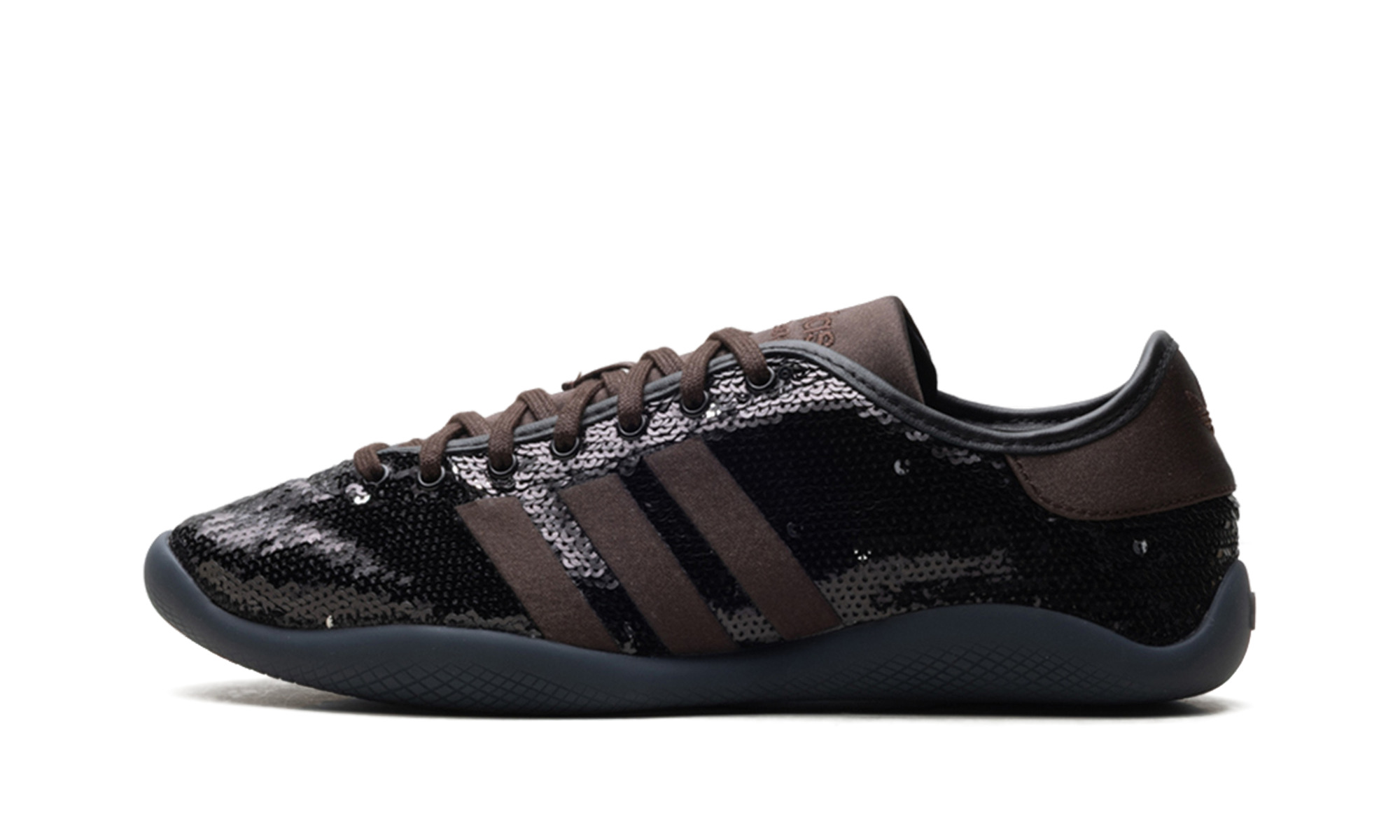Step into elevated style with the magnificent ADIDAS Karintha "Wales Bonner - Black Dark Brown Sequin." This stunning collaboration transforms a classic silhouette into a dazzling, luxury statement piece. The upper is completely covered in shimmering black and dark brown sequins, offering an unmatched textural depth and sophisticated shine. Merging the sportswear heritage of Adidas with Wales Bonner’s distinct, high-fashion aesthetic, this exclusive shoe is perfect for the modern enthusiast who wants a bold look. Secure this unique piece to add instant glamour to your rotation.