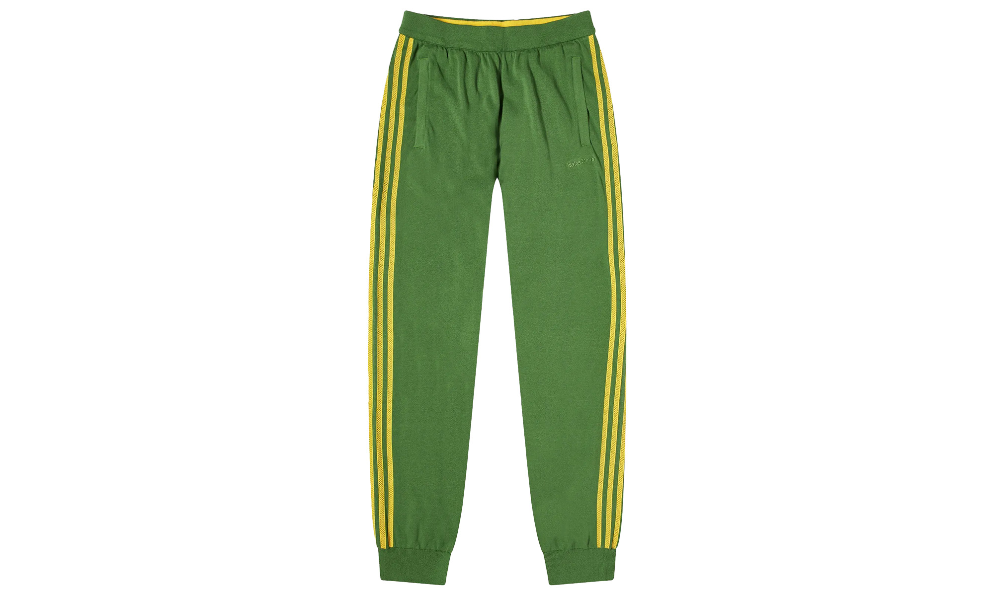 The Wales Bonner x Adidas Nylon Knit Track Pants in "Green" fuse high-fashion design with classic athletic wear. This collaborative piece elevates the track pant silhouette with a premium nylon knit construction. The striking green hue is contrasted by co-branded details, reflecting the unique aesthetic of Grace Wales Bonner that blends European tailoring with a celebration of Afro-Atlantic culture.