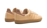 The adidas Samba “Halo Blush” is a monochromatic beige colorway of the casual sneaker with a premium construction. The Samba enjoyed a resurgence in popularity beginning in 2021 and 2022, and is now considered one of the most recognizable sneakers in the world. Here, the “Halo Blush” colorway features an all-beige leather construction with tonal leather overlays and molded Three Stripes detailing on either side. A small gold “Samba” logo is located on the lateral side of the shoe near the aforementioned Three Stripes. “Adidas Samba” detailing can be found on the tongue. A gum rubber sole completes the clean look. Release date: September 15, 2023