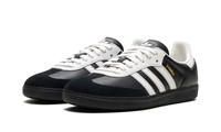 Step into a celebration of Adidas history with the Samba OG "75th Anniversary Pack Black". This limited-edition shoe honors the brand's 75 years of heritage with premium black leather and classic white accents. The sleek design and gum outsole deliver a comfortable fit and a versatile look that’s perfect for making a powerful, sophisticated statement every day.