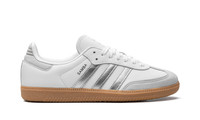 Step into a sleek, modern aesthetic with the Adidas Samba OG Wmns "White / Silver Metallic / Grey". This celebrated women's sneaker features a clean white leather upper accented by a shimmering Silver Metallic Three Stripes. Enjoy superior cushioning and a design that’s perfect for making a stylish statement with a subtle futuristic twist.