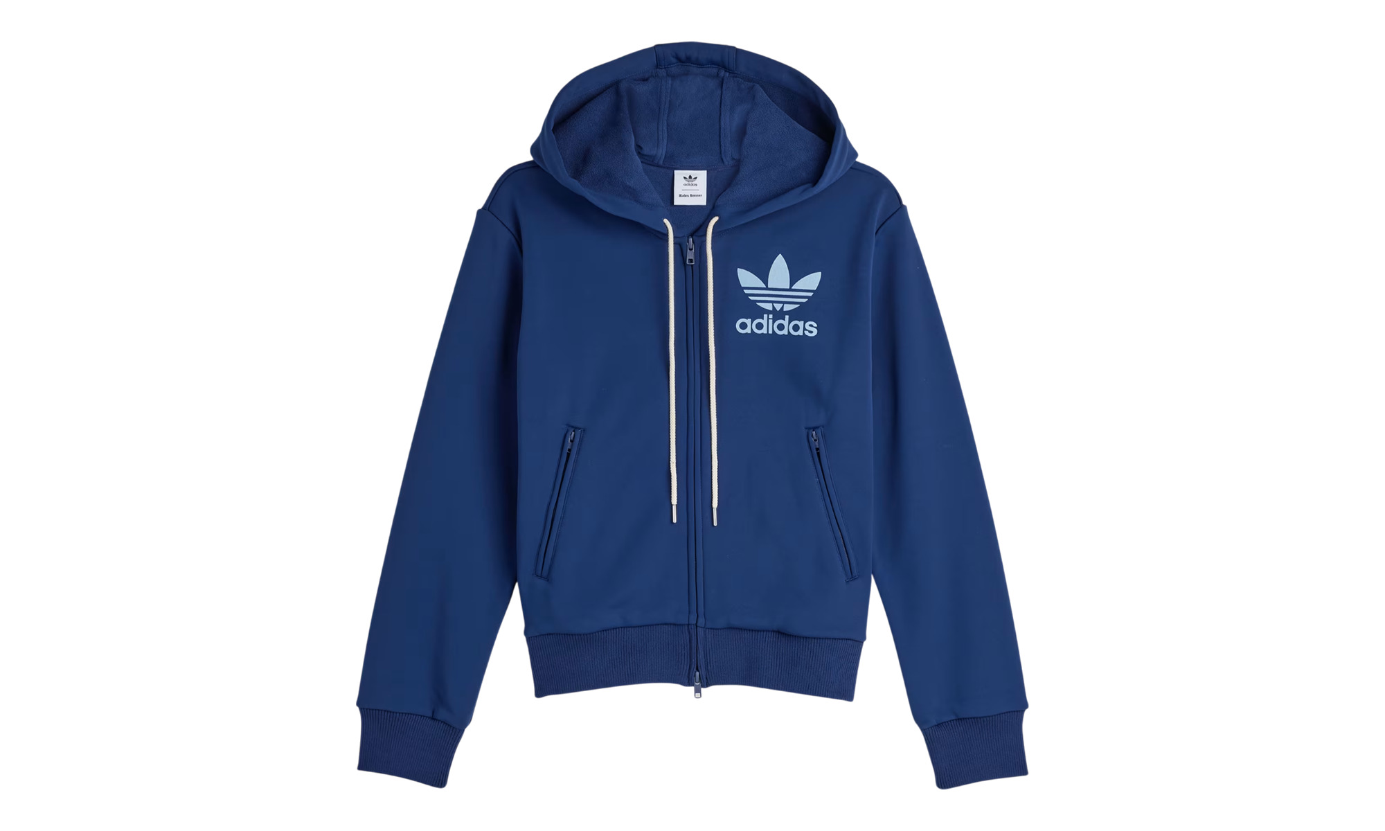 The Adidas Wales Bonner Track Hoodie "Navy" is a must-have piece from the ongoing collaboration that reinterprets archival sportswear with luxury flair. Drenched in a rich, collegiate navy color, this pullover features the signature Adidas trefoil and Wales Bonner branding, elevating the classic hoodie silhouette. Crafted for comfort and style, the quality fabric makes it perfect for layering or making a sophisticated statement on its own. Add this sought-after piece to your collection and embody a blend of heritage and high fashion.