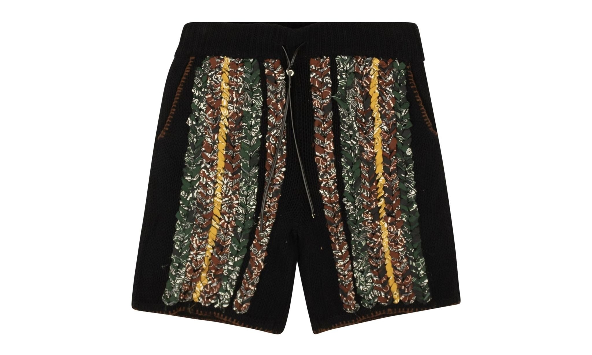 Cotton Braided Bandana Knit Shorts "Black and Multi"