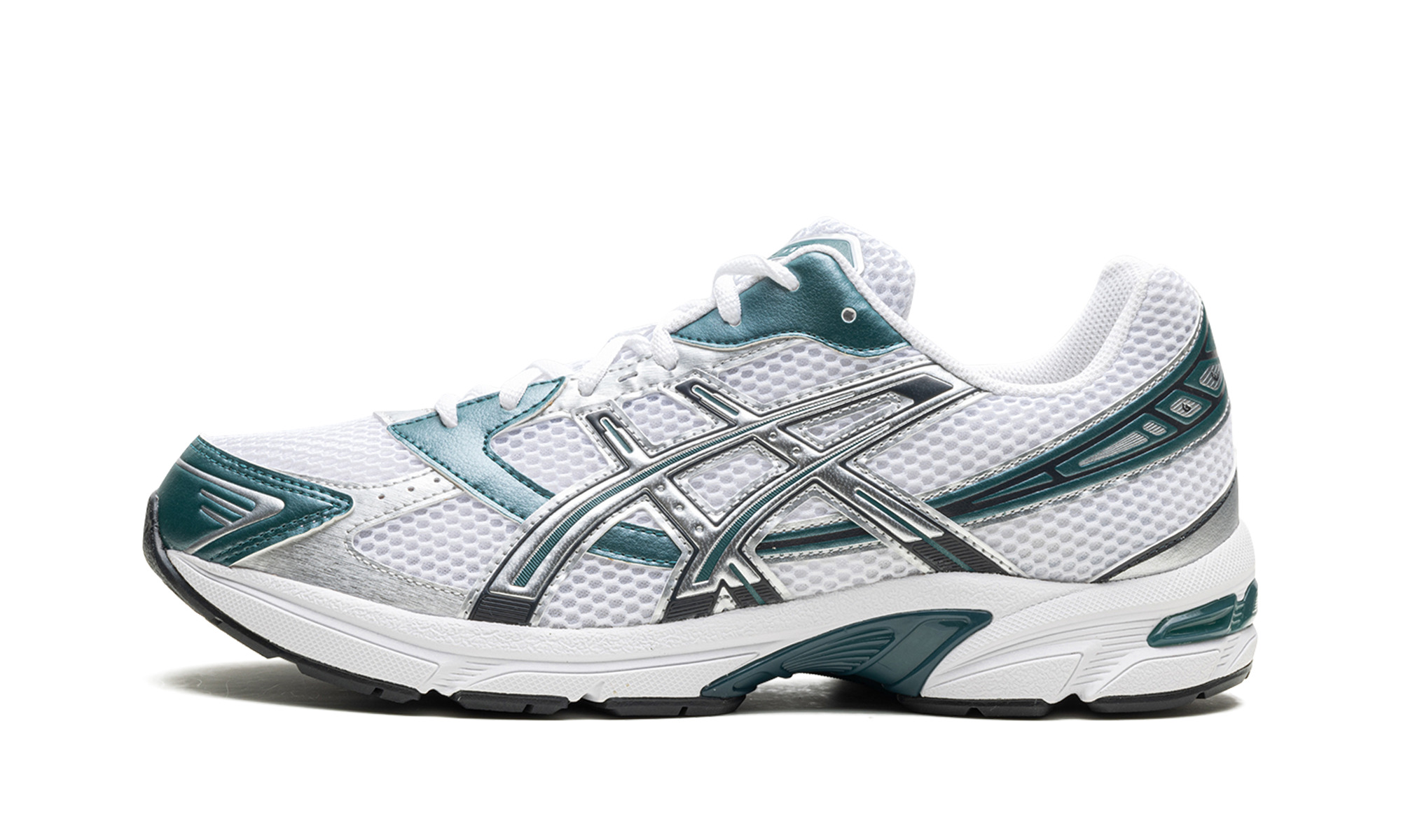 The ASICS Gel-1130 “White/Dark Neptune” is a colorway of the retro shoe by the Japanese footwear company with eye-catching green features. The shoe is complete with a White mesh upper and Dark Neptune-colored synthetic leather overlays. ASICS’ famous “tiger” stripes are designed in Metallic Silver and accented with Dark Neptune on the sides. “Gel-1130” logo appears on the tongue and “Gel” is spelled out on the inserts on the collar overlay. ASICS’s Gel cushioning technology is embedded within the heel for a comfortable ride.