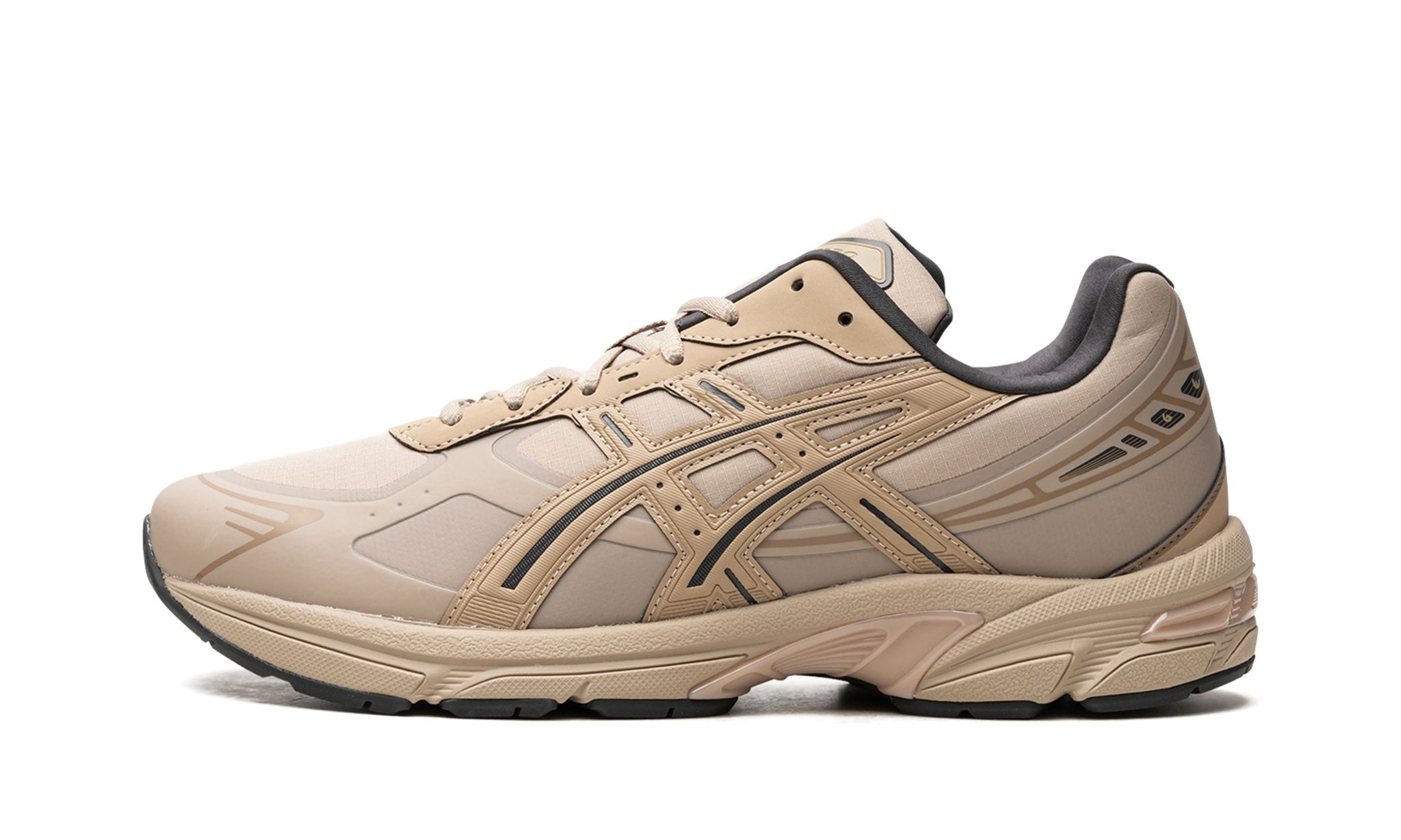 The ASICS Gel-1130 NS "Wood Crepe" is a mostly monochromatic tan colorway of the retro running shoe made from recycled materials. The ASICS Gel-1130 NS features no-sew overlays and is made with at least 20% eco-friendly materials to reduce waste and carbon emissions. The upper features a Wood Crepe appearance and black accented ASICS “tiger” stripes on the sides. Underfoot, Gel cushioning inserts in the midsole provide a comfortable ride. The ASICS Gel-1130 NS is a popular shoe in the Y2K-style sneaker trend.