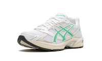 The ASICS Gel-1130 "White/Malachite Green" is the women’s sizing version of the retro running shoe with a mostly two-tone, white-and-green look. The ASICS Gel-1130 is “White/Malachite Green” has a white open-mesh construction with Malachite Green leather overlays. A “Gel-1130” logo appears on the tongue in green, while “Gel” is spelled out on the Malachite Green overlay on the collar. Underfoot, a techy-looking midsole with ASICS’s Gel cushioning technology completes the look.