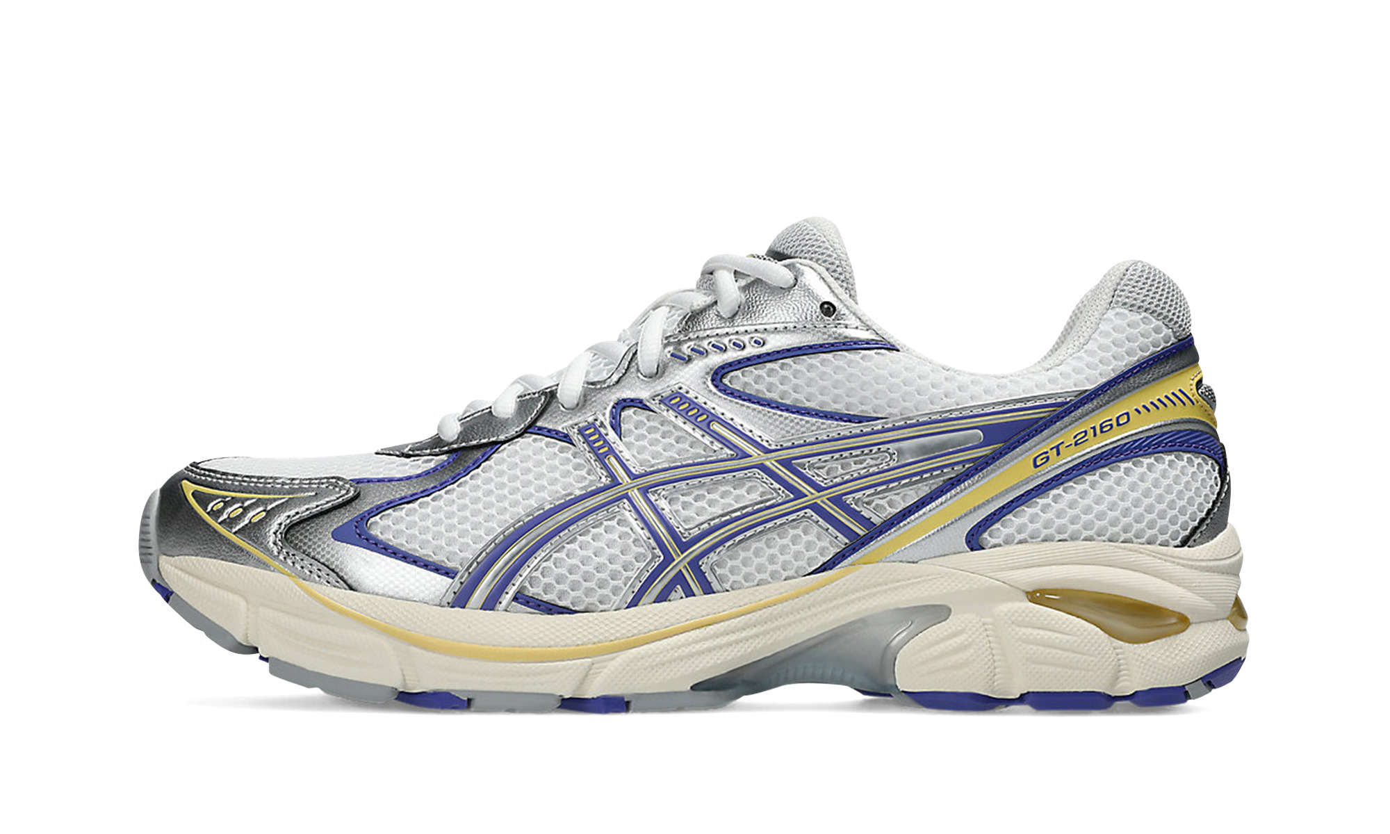 Make a refreshing, sporty statement with the ASICS GT-2160 "White Blue Violet." This coveted lifestyle runner pays homage to the technical aesthetic of the early 2010s with a clean white mesh base and dynamic synthetic overlays. Accents of cool blue and subtle violet infuse the design with energizing color. Signature GEL® technology inserts and a segmented midsole provide advanced shock absorption and responsive cushioning for comfort that lasts all day.