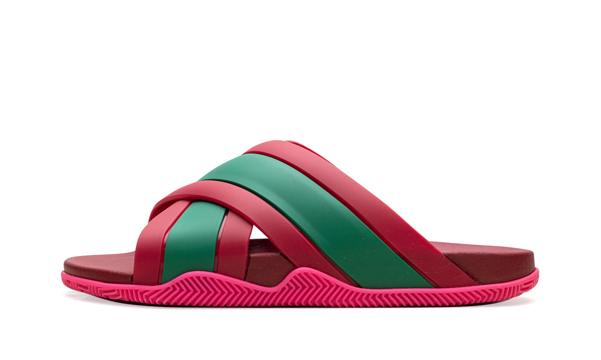 Step into effortless comfort with the Web Slide Wmns "Pink Rubber." This women's slide offers a soft, textured footbed and a stylish web-like strap design. The vibrant pink rubber provides a cheerful aesthetic, perfect for making a playful statement at the pool, beach, or for casual days.