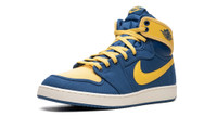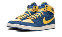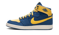 The Air Jordan 1 KO "Laney" is a colorway of the retro basketball sneaker that nods to Michael Jordan’s high school in Wilmington, North Carolina. A salute to team uniform colors of Jordan’s high school basketball team and the early beginnings of his journey in basketball, the “Laney” colorway theme has appeared on several Air Jordan models throughout the years, and on the Jordan 1 KO for the first time in 2023. The shoe has a True Blue canvas base with Topaz Gold canvas on the toe and a Topaz Gold leather Swoosh and collar. A blue “AJKO” branded “Wings” logo appears on the collar while gold “Nike” insignia is found on the tongue. An aged-looking rubber midsole and True Blue rubber outsole complete the look. Release date: September 9, 2023