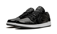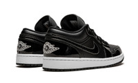 The Air Jordan 1 Low SE “All-Star 2021” is a colorway of Michael Jordan’s first signature shoe in its low-top style dedicated to the 2021 NBA All-Star Game. Like the Air Jordan 1 Mid of the same nickname, the Jordan 1 Low “All-Star 2021” is dressed in an appealing two-tone black-and-white color scheme. A glossy black leather synthetic material appears on the overlaid panels found on the forefoot, eyelets, collar, and heel. Tonal matte black leather forms the base of the shoe on the perforated toe, mid-panel, and collar. White contrast stitching outlines the black leather Swoosh branding on either side and a white “Wings” logo is embroidered on the back of the shoe. Blacked-out “23” insignia on the lace overlay pairs with the circular Jumpman detailing on the tongue to inspire a unique look for the Air Jordan 1. Release date: February 2021.