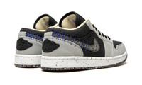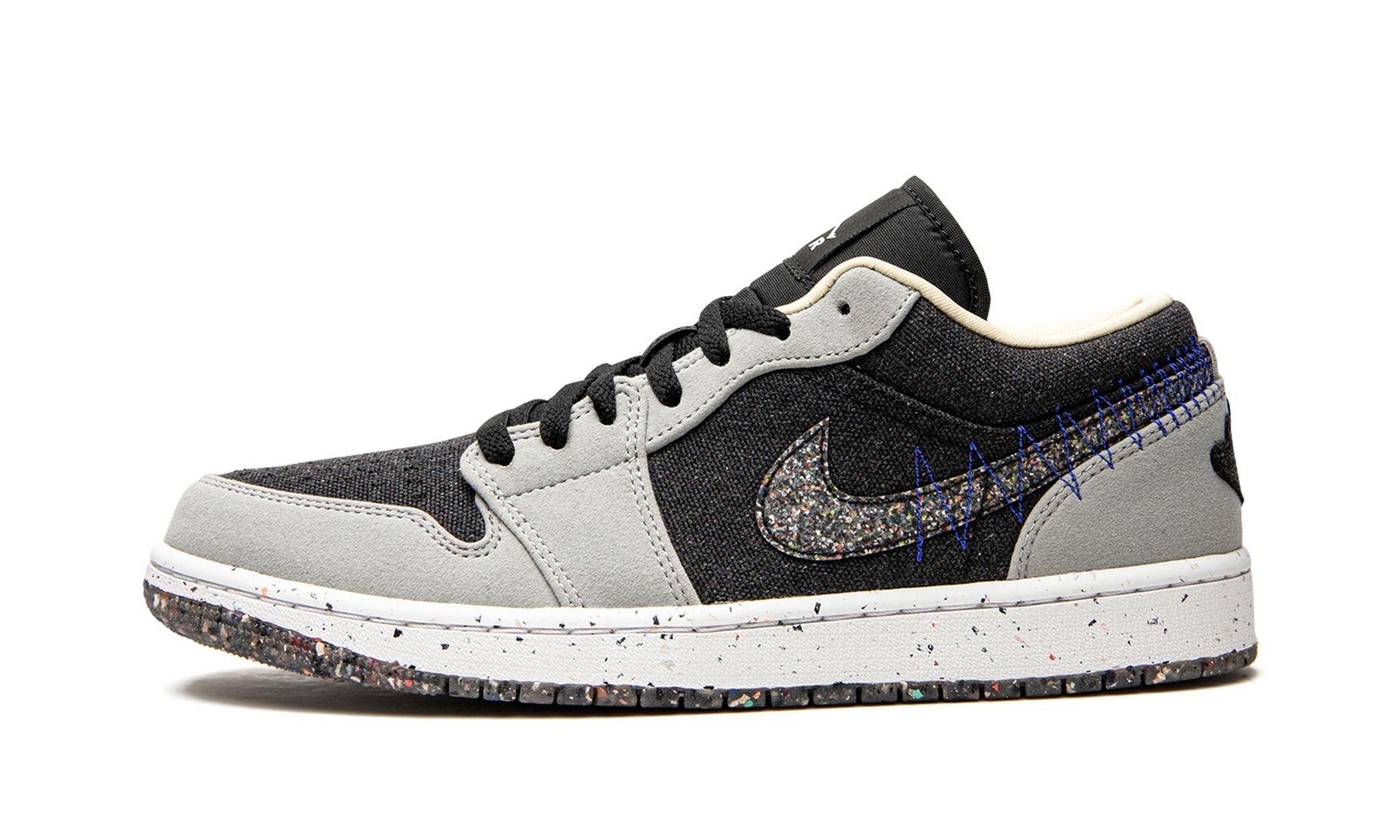 The Air Jordan 1 Low Crater “Light Smoke Grey” is an environmentally friendly version of the retro basketball shoe that was released in Fall 2021. A core offering from Nike’s “Move to Zero” initiative that places an emphasis on sustainability, the Jordan 1 Low Crater is an alternative to the standard Air Jordan 1 Low that is constructed from recycled materials. A lightweight black textile appears on the shoe’s perforated toe, mid-panel, and collar. The overlays are constructed from grey suede. A multicolor, threaded Swoosh composed of Nike Grind straps can be found on both sides and a modified, raised “Wings” graphic appears on the heel. Multicolor speckling on the white midsole and a Nike Grind outsole complete the look.